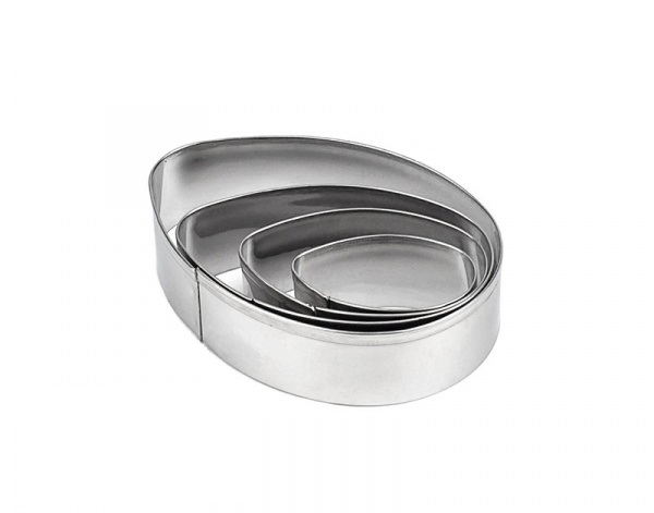Набор вырубок предназначен для вырезания печенья в форме яиц разного размера. В набор входит четыре размера резаков.